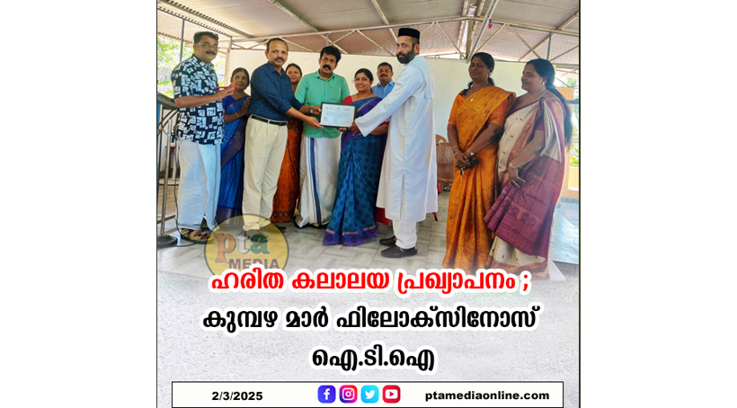 പത്തനംതിട്ട – മാലിന്യമുക്തം നവകേരളം പദ്ധതിയുടെ ഭാഗമായി കുമ്പഴ മാർ ഫിലോക്സിനോസ് ഐ ടി ഐയെ മൈലപ്ര ഗ്രാമപഞ്ചായത്ത് പ്രസിഡന്റ് രജനി ജോസഫ് ഹരിത കലാലയമായി പ്രഖ്യാപിച്ചു. കലാലയങ്ങളിലെ ശുചിത്വപരിപാലനവും മാലിന്യസംസ്കരണ പ്രവർത്തനങ്ങൾക്ക് ശാസ്ത്രീയമായ സംവിധാനവും ഒരുക്കിക്കൊണ്ട് ഹരിതാഭമാക്കുന്നതിന്റെയും ഭാഗമായാണ് ഹരിതകേരളം മിഷന്റെ സഹകരണത്തോടെ പ്രഖ്യാപനം നടത്തിയത്.
