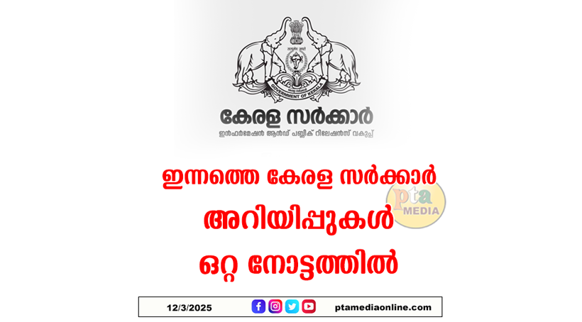 ഇന്നത്തെ കേരള സർക്കാർ അറിയിപ്പുകൾ ഒറ്റ നോട്ടത്തിൽ