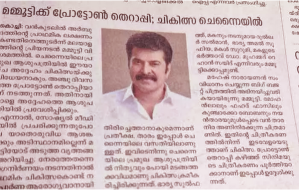 ദീപിക പത്രം പ്രാധാന്യത്തോടെ ഓൺലൈനിലും ഈ വാർത്ത നൽകുന്നു. വൻകുടലിൽ അർബുദത്തിന്റെ പ്രാഥമിക ലക്ഷണം കണ്ടതിനെത്തുടർന്ന് മലയാളത്തിന്റെ പ്രിയനടൻ മമ്മൂട്ടി വിശ്രമത്തിൽ എന്നാണ് ദീപികയുടെ വാർത്ത. ചെന്നൈയിലെ പ്രമുഖ ആശുപത്രിയിൽ ഈയാഴ്ച അദ്ദേഹം ചികിത്സയ്ക്കു വിധേയനാകും. അഞ്ചു ദിവസത്തെ പ്രോട്ടോൺ തെറാപ്പിയാണ് നടത്തുന്നത്. അതിനായി നാളെ അദ്ദേഹത്തെ ആശുപത്രിയിൽ പ്രവേശിപ്പിക്കുമെന്നും ദീപിക പറയുന്നു. മമ്മൂട്ടിയുടെ അസുഖത്തിൽ ആശങ്കപ്പെടാനില്ലെന്നും രോഗ കാരണമെന്തെന്നും പുറത്തു വിട്ടത് ഓൺലൈൻ മാധ്യമങ്ങളാണ്. ഇതിന് പിന്നാലെ മമ്മൂട്ടിയുടെ ഫാൻസ് ചില മറു പ്രചരണവുമായി എത്തി. ഓൺലൈൻ മാധ്യമങ്ങളെ പരിഹസിക്കുന്ന രീതിയിലാരുന്നു അത്.