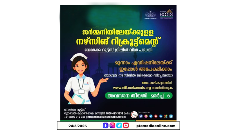 തിരുവനന്തപുരം – കേരളത്തില് നിന്നും ജര്മ്മനിയിലേയ്ക്കുളള നഴ്സിങ് റിക്രൂട്ട്മെന്റിനായുളള നോര്ക്ക ട്രിപ്പിള് വിൻ കേരള പദ്ധതിയുടെ എഴാം ഘട്ടത്തിലെ 250 ഒഴിവുകളിലേയ്ക്ക് അപേക്ഷ ക്ഷണിച്ചു. ജർമ്മനിയിലെ ഹോസ്പ്പിറ്റലുകളിലേയ്ക്കാണ് നിയമനം. ഉദ്യോഗാര്ത്ഥികൾ www.norkaroots.org, www.nifl.norkaroots.org എന്നീ വെബ്സൈറ്റുകള് മുഖേന 2025 ഏപ്രില് ആറിനകം അപേക്ഷ നല്കേണ്ടതാണെന്ന് നോര്ക്ക റൂട്ട്സ് ചീഫ് എക്സിക്യൂട്ടീവ് ഓഫീസര് അജിത് കോളശ്ശേരി അറിയിച്ചു. ബി.എസ്.സി/ജനറൽ നഴ്സിങാണ് അടിസ്ഥാന യോഗ്യത. ബി.എസ്.സി/ പോസ്റ്റ് ബേസിക് ബി എസ് സി യോഗ്യതയുളളവര്ക്ക് തൊഴിൽ പരിചയം ആവശ്യമില്ല. എന്നാൽ ജനറൽ നഴ്സിങ് പാസ്സായവര്ക്ക് രണ്ടു വർഷത്തെ പ്രവൃത്തി പരിചയം നിർബന്ധമാണ്. ഉയർന്ന പ്രായപരിധി 2025 മെയ് 31ന് 38 വയസ്സ് അധികരിക്കരുത്. ഷോര്ട്ട്ലിസ്റ്റു ചെയ്യപ്പെടുന്നവര്ക്കായുളള അഭിമുഖം 2025 മെയ് 20 മുതല് 27 വരെ എറണാകുളത്തും തിരുവനന്തപുരത്തുമായി നടക്കും. കുറഞ്ഞ പ്രതിമാസ ശമ്പളം 2300 യൂറോയും രജിസ്റ്റേർഡ് നഴ്സ് തസ്തികയില് പ്രതിമാസം 2900 യൂറോയുമാണ്. പദ്ധതിയിലേയ്ക്ക് അപേക്ഷിക്കുന്നതിന് ഉദ്യോഗാർത്ഥികൾക്ക് ജർമ്മൻ ഭാഷ പരിജ്ഞാനം നിര്ബന്ധമില്ല. എന്നാല് ഇതിനോടകം ജര്മ്മൻ ഭാഷയിൽ ബി1, ബി2 യോഗ്യത നേടിയവരെ ഫാസ്റ്റ്ട്രാക്ക് പ്രോഗ്രാമിലൂടെ പരിഗണിക്കുന്നതാണ്.