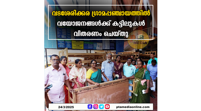 വടശ്ശേരിക്കര – ഗ്രാമപഞ്ചായത്ത് വയോജനങ്ങളായ ഗുണഭോക്താക്കൾക്ക് കട്ടിലുകളും അടുക്കള മാലിന്യം സംസ്കരിക്കുന്നതിന് ജി ബിന്നുകളും വിതരണം ചെയ്തു. ഗ്രാമപഞ്ചായത്ത് പ്രസിഡന്റ് ലതാ മോഹൻ ഉദ്ഘാടനം ചെയ്തു. വൈസ് പ്രസിഡന്റ് ഒ എൻ യശോധരൻ, സ്ഥിരം സമിതി അധ്യക്ഷരായ റ്റി പി സൈനബ, പി എം സാബു , വി ആർ അശ്വതി , അംഗങ്ങളായ മേഴ്സി ജോൺ, സ്വപ്ന സൂസൻ ജേക്കബ്, ഷീലു മാനാപ്പള്ളിൽ, വി ജെ ജോർജ്കുട്ടി , രാധാ സുന്ദർ സിംഗ്, എസ്.പത്മലേഖ , കെ കെ രാജീവ് , വർഗീസ് സുദേഷ് കുമാർ, സാറാമ്മ, ഇ കെ ശ്രീജമോൾ എന്നിവർ പങ്കെടുത്തു.