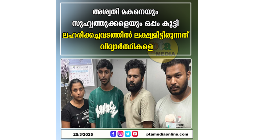 പാലക്കാട് – അശ്വതിയും, മകനും ഉൾപ്പെടയുള്ള നാലംഗ സംഘം എംഡിഎംഎയുമായി പിടിയിലായ സംഭവത്തിൽ പുറത്തുവരുന്നത് ഞെട്ടിപ്പിക്കുന്ന വിവരങ്ങൾ. തൃശൂർ കൊടുങ്ങല്ലൂർ സ്വദേശി അശ്വതി (39), മകൻ ഷോൺസണ്ണി (20), അശ്വതിയുടെ സുഹൃത്തുക്കളായ കോഴിക്കോട് എലത്തൂർ മുഖവൂർ സ്വദേശി മൃദുൽ (29), അശ്വിൻലാൽ (26) എന്നിവരാണ് ഇന്നലെ അറസ്റ്റിലായത്. വർഷങ്ങളായി ലഹരിക്ക് അടിമകളാണ് സംഘം എന്ന വിവരമാണ് പുറത്തുവരുന്നത്, വിദ്യാർത്ഥികളെ കേന്ദ്രീകരിച്ചായിരുന്നു ഇവരുടെ എംഡിഎംഎ കച്ചവടം.