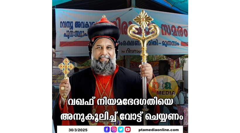 ‘മുനമ്പത്തെ ജനങ്ങൾ നിയമാനുസൃതമായി കൈവശം വച്ച് അനുഭവിച്ചു വന്ന ഭൂമിയിക്ക് മേലുള്ള റവന്യൂ അവകാശങ്ങൾ ഉപയോഗിക്കാൻ സാധിക്കാത്ത വിധം ഉന്നയിക്കപ്പെട്ട അവകാശവാദങ്ങളെ സാധൂകരിക്കുന്ന വകുപ്പുകൾ ഭേദഗതി ചെയ്യണം. മുനമ്പത്തെ ജനത്തിന് ഭൂമി വിറ്റ ഫറൂഖ് കോളേജ് തന്നെ പ്രസ്തുത ഭൂമി ദാനമായി ലഭിച്ചതാണെന്ന് ഉറപ്പിച്ചു പറഞ്ഞിരിക്കുകയാണ്. ഈ സാഹചര്യത്തിൽ എതിർ വാദം ഉന്നയിക്കത്തക്കവിധം വകുപ്പുകൾ വഖഫ് നിയമത്തിൽ ഉള്ളത് ഭേദഗതി ചെയ്യാൻ ജനപ്രതിനിധികൾ സഹകരിക്കണം’ – കെസിബിസി പുറത്തിറക്കിയ വാർത്താക്കുറിപ്പിൽ അദ്ദേഹം ആവശ്യപ്പെട്ടു.
