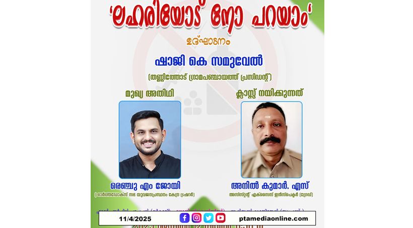 ക്യാമ്പയിൻ ആയ ‘ലഹരിയോട് നോ പറയാം”. 2025 ഏപ്രിൽ 12, ശനി 11:30 ന് സെൻ്റ് ജോർജ് ഓർത്തഡോക്‌സ് ചർച്ച് എലിമുള്ളും പ്ലാക്കലിൽ വെച്ച് നടക്കും. തണ്ണിത്തോട് ഗ്രാമപഞ്ചായത്ത് പ്രസിഡന്റ് ഷാജി കെ സമുവേൽ ഉദ്ഘാടനം ചെയ്യുന്ന മീറ്റിങ്ങിൽ, ഓർത്തഡോക്സ‌് സഭ യുവജനപ്രസ്ഥനം കേന്ദ്ര ട്രഷറർ രെഞ്ചു എം ജോയി മുഖ്യാ അതിഥിയായിരിക്കും.ലഹരി വിരുദ്ധ ക്ലാസുകൾക്ക് അനിൽ കുമാർ. എസ് അസിസ്‌റ്റന്റ്റ് എസൈസ് ഇൻസ്പെക്ടർ നേതൃത്വം നൽകും.യോഗത്തിൽ ഇടവക വികാരി ഫാദർ ബിപിൻ പാപ്പച്ചൻ അധ്യക്ഷത വഹിക്കുന്ന മീറ്റിങ്ങിൽ കെസിസി സോൺ ഭാരവാഹികൾ ബഹു വൈദികർ സൺഡേ സ്കൂൾ ഭാരവാഹികൾ പങ്കെടുക്കുമെന്ന് ഭാരവാഹികൾ അറിയിച്ചു.