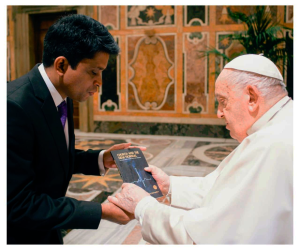 ഫോട്ടോ: മലങ്കര മാർത്തോമ്മാ സഭാ അൽമായ ട്രസ്റ്റി അൻസിൽ സക്കറിയ കോമാട്ട് വത്തിക്കാനിൽ ഫ്രാൻസിസ് മാർപാപ്പയ്ക്ക് മാർത്തോമ്മാ സഭയുടെ പരമാദ്ധ്യക്ഷൻ ഡോ തിയോഡോഷ്യസ് മാർത്തോമ്മാ മെത്രാപ്പോലീത്താ എഴുതിയ ‘ചർച്ച് ആന്റ് ദി ന്യൂ നോർമ്മൽ’ എന്ന പുസ്തകം കൈമാറുന്നു.