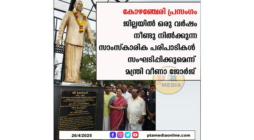 കോഴഞ്ചേരി പ്രസംഗം : ജില്ലയിൽ ഒരു വർഷം നീണ്ടു നിൽക്കുന്ന സാംസ്കാരിക പരിപാടികൾ സംഘടിപ്പിക്കുമെന്ന് മന്ത്രി വീണാ ജോർജ്