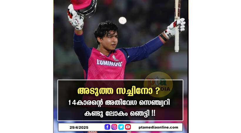 ന്യൂഡൽഹി – അതിവേഗ സെഞ്ചുറിയോടെ നാളിതുവരെ ഒരു ഇന്ത്യക്കാരനും സ്വന്തമാക്കാത്ത നേട്ടങ്ങൾ പലതും വൈഭവ് സ്വന്തം പേരിലാക്കി. വെടിക്കെട്ടോടെ ഐപിഎൽ അരങ്ങേറ്റം ഉജ്വലമാക്കിയ വൈഭവ് വിസ്മയിപ്പിക്കുകയാണ്. ക്രിക്കറ്റിലെ സൂപ്പർ താരങ്ങൾ വാഴുന്ന ഐപിഎല്ലിൽ ഒരു 14 കാരന് എന്ത് ചെയ്യാനാകുമെന്ന ചോദിച്ചവർക്കെല്ലാം ഇന്നലത്തെ ആ ഒരൊറ്റ ഇന്നിങ്സുകൊണ്ട് വൈഭവ് മറുപടി നൽകി. ഗുജറാത്തിനെതിരേ 35 പന്തിൽ സെഞ്ചുറിനേടിയ ഇന്നിങ്സിന് സമാനതകളില്ല.