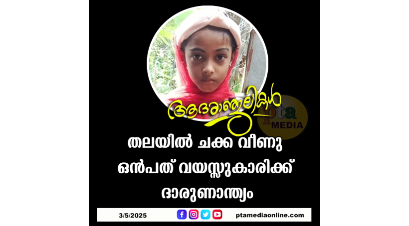 ചക്ക വീണതിനെത്തുടർന്ന് തലയടിച്ചു വീണ് ഒൻപത് വയസ്സുകാരിക്ക് ദാരുണാന്ത്യം