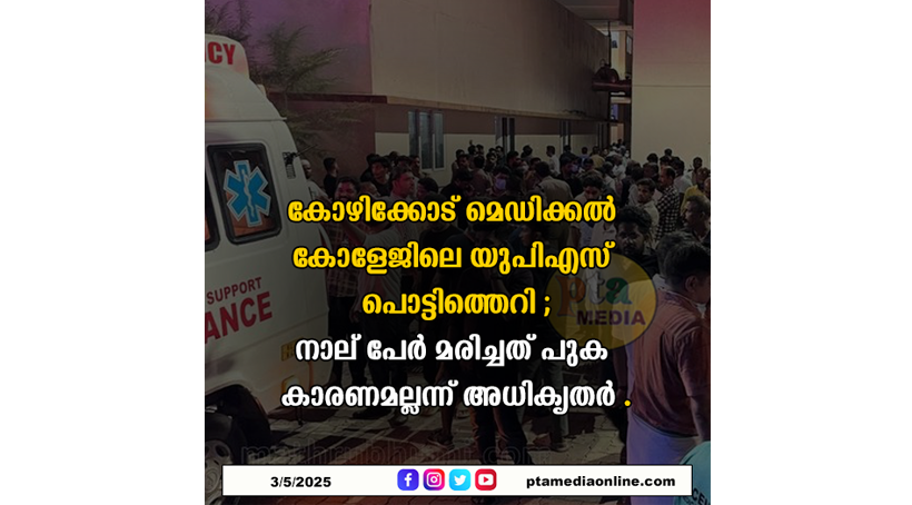 കോഴിക്കോട് – ഇന്നലെ രാത്രി മെഡിക്കൽ കോളേജിലുണ്ടായ പൊട്ടിത്തെറിയും തുടർന്നുള്ള പുകയും കാരണമല്ല അഞ്ചു മരണങ്ങൾ സംഭവിച്ചതെന്ന് അധികൃതർ പറഞ്ഞു. മരിച്ച അഞ്ചുപേരിൽ ഒരാളെ ആശുപത്രിയിലേക്ക് കൊണ്ടുവന്നപ്പോഴേ മരണപ്പെട്ടിരുന്നുവെന്നും മറ്റുള്ളവർ അതീവ ഗുരുതരാവസ്ഥയിലുള്ളവരായിരുന്നെന്നും അധികൃതർ വെളിപ്പെടുത്തി.