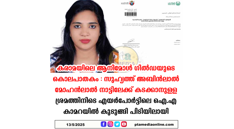 ദുബായ്: കരാമയിൽ തിരുവനന്തപുരം നെടുമങ്ങാട് ബോണക്കാട് സ്വദേശിനി ആനിമോള് ഗില്ഡ (26)യെ കൊലപ്പെടുത്തിയത് സുഹൃത്തായ അബുദാബിയിലെ സ്വകാര്യാശുപത്രിയില് ജോലി ചെയ്യുന്ന തിരുവനന്തപുരം സ്വദേശി അബിന് ലാല് മോഹന്ലാല്(28). സംഭവശേഷം നാട്ടിലേക്ക് രക്ഷപ്പെടാന് ശ്രമിച്ച ഇയാളെ ദുബായ് രാജ്യാന്തര വിമാനത്താവളത്തില് ആധുനിക സാങ്കേതിക വിദ്യ (എ.ഐ) പ്രവര്ത്തിക്കുന്ന ക്യാമറ ഉപയോഗിച്ച് തിരിച്ചറിഞ്ഞാണ് പൊലീസ് പിടികൂടിയത്.