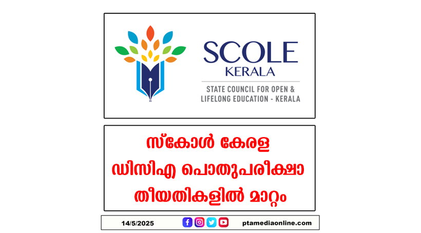 തിരുവനന്തപുരം – സ്കോൾ കേരള മെയ് 20, 21 നടത്താൻ നിശ്ചയിച്ചിരുന്ന ഡിസിഎ കോഴ്സ് പത്താം ബാച്ച് തിയറി പരീക്ഷ മാറ്റി. പുതുക്കിയ ടൈംടേബിൾ അനുസരിച്ച് 20 ന് രാവിലെ 10 മുതൽ 12.30 വരെ നടത്താനിരുന്ന DC-01 (Information Technology) പരീക്ഷ 31ന് രാവിലെ 10 മുതൽ 12.30യും 21ന് രാവിലെ 10 മുതൽ 11.30 വരെ നടത്താനിരുന്ന DC-02 (PC and its Operations) പരീക്ഷ 31ന് ഉച്ചയ്ക്ക് 2 മുതൽ 3.30 വരെയും നടത്തും. മറ്റ് പരീക്ഷാ തീയതികളിൽ മാറ്റമില്ല. പ്രായോഗിക പരീക്ഷകൾ മെയ് 27, 28, 29, 30 തീയതികളിൽ നടത്തുന്നതാണ്. വിദ്യാർത്ഥികൾ അതാത് പരീക്ഷാകേന്ദ്രങ്ങളിൽ നിന്നും മെയ് 16 മുതൽ ഹാൾ ടിക്കറ്റ് കൈപ്പറ്റണം. വിശദവിവരങ്ങൾക്ക്: www.scolekerala.org.