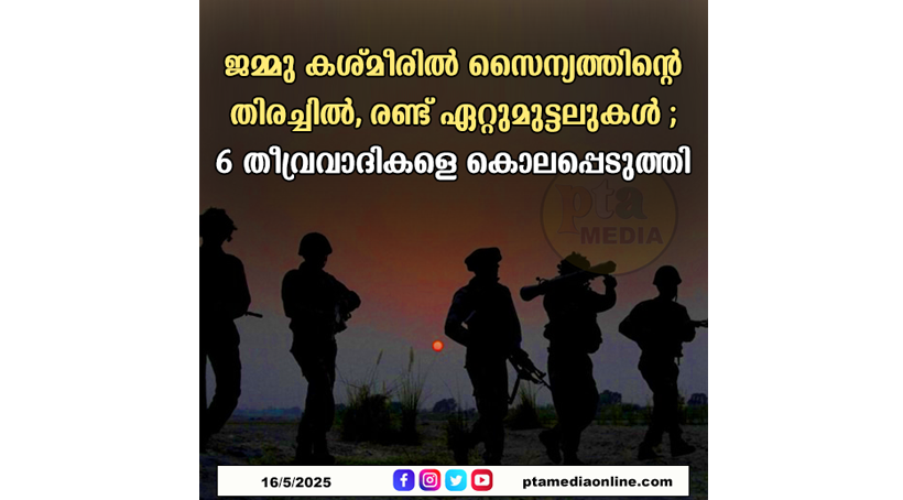 ശ്രീനഗർ – പെഹൽഗാമിൽ ഭീകരാമക്രമണം നടത്തിയവർക്കായി സംസ്ഥാനമാകെ വ്യാപക തിരച്ചിൽ തുടരുന്നു. കഴിഞ്ഞ 48 മണിക്കൂറിൽ ആറ് ഭീകരവാദികളെ വധിച്ചെന്ന് സൈന്യം അറിയിച്ചു. സൈന്യത്തിൻറെ ഏകീകൃതമായ പ്രവർത്തനമാണ് വിജയം കണ്ടത്. നിരവധി ആയുധങ്ങളും പിടിച്ചെടുത്തു. ജമ്മു മേഖലയിലെ ഭീകരവാദികളുടെ താവളങ്ങൾ കണ്ടെത്തിയെന്നും സേന അറിയിച്ചു. കൂടുതൽ തിരച്ചിൽ നടക്കുന്നു. രാജ്യമാകെ വിമാനത്താവളങ്ങളിൽ അടക്കം തിരച്ചിൽ ശക്തമാക്കിയിട്ടുണ്ട്.