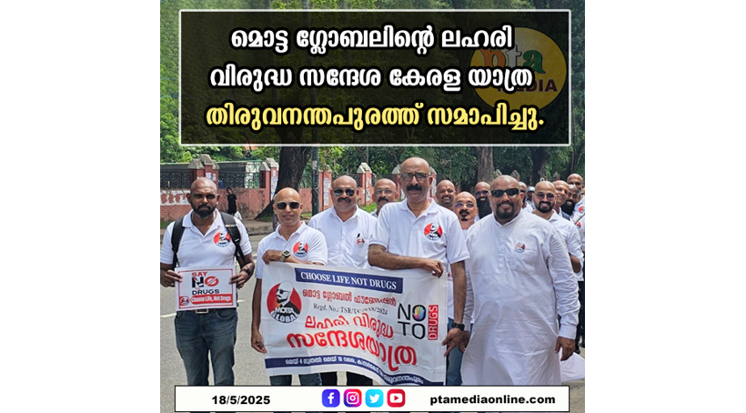 തിരുവനന്തപുരം: തല മൊട്ടയടിച്ചവരുടെ ആഗോള സംഘടനയായ മൊട്ട ഗ്ലോബലിന്റെ നേതൃത്വത്തിൽ മെയ് 4ന് കാസർകോഡ് നിന്നും തുടക്കം കുറിച്ച ലഹരി വിരുദ്ധ സന്ദേശ കേരള യാത്ര സമാപിച്ചു. തിരുവനന്തപുരം സെക്രട്ടേറിയേറ്റ് പരിസരത്ത് നടന്ന ചടങ്ങ് അസി. എക്സൈസ് കമ്മീഷണർ പി.എസ് ഹരികുമാർ ഉദ്ഘാടനം നിർവഹിച്ചു.ഫൗണ്ടർ പ്രസിഡണ്ട് സജീഷ് കുട്ടനെല്ലൂർ അധ്യക്ഷത വഹിച്ചു. സംഘടന അംഗം മ്യുസിയം എസ്. ഐ വിപിൻ ഗബ്രിയേൽ മുഖ്യ സന്ദേശം നല്കി. പൊതു പ്രവർത്തക വാഹിദ നിസാർ, കോ-ഓർഡിനേറ്റർ എ പി പ്രേംദത്ത്, ട്രഷറർ നിയാസ് പാറക്കൽ,