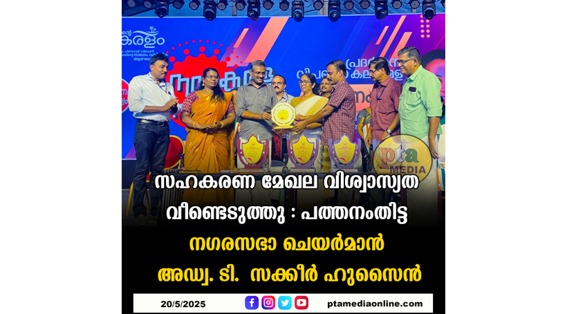 പത്തനംതിട്ട – നവകേരള സൃഷ്ടിയിൽ സഹകരണ മേഖല പ്രധാന പങ്ക് വഹിക്കുന്നുവെന്ന് പത്തനംതിട്ട നഗരസഭ ചെയർമാൻ അഡ്വ. ടി. സക്കീർ ഹുസൈൻ. എന്റെ കേരളം പ്രദർശന മേളയിൽ നടന്ന സഹകരണ വകുപ്പിന്റെ ‘നിക്ഷേപ സമാഹരണ യജ്ഞം 2025’ ജില്ലാതല പുരസ്കാര വിതരണം ഉദ്ഘാടനം നിർവഹിക്കുകയായിരുന്നു നഗരസഭാ ചെയർമാൻ.