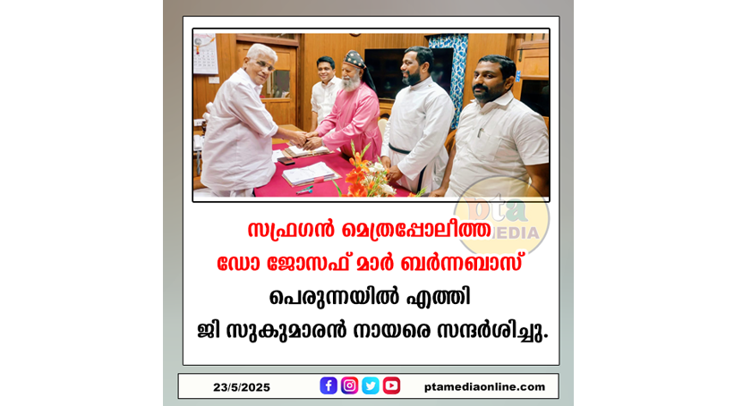 സഫ്രഗൻ മെത്രപ്പോലീത്ത ഡോ ജോസഫ് മാർ ബർന്നബാസ് പെരുന്നയിൽ എത്തി ജനറൽ സെക്രട്ടറി ജി സുകുമാരൻ നായരെ സന്ദർശിച്ചു.
