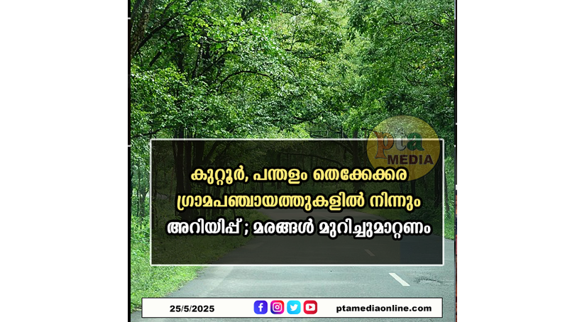 കുറ്റൂർ, പന്തളം തെക്കേക്കര ഗ്രാമപഞ്ചായത്തുകളിൽ നിന്നും അറിയിപ്പ് ; മരങ്ങൾ മുറിച്ചുമാറ്റണം