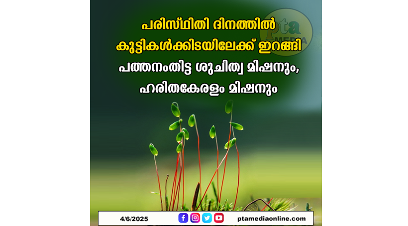 പത്തനംതിട്ട – ജില്ലാ ശുചിത്വ മിഷന്റെയും ഹരിതകേരളം മിഷന്റെ നേതൃത്വത്തിൽ ജില്ലാതല പരിസ്ഥിതി ദിനാഘോഷം ജൂൺ അഞ്ചിന് തുമ്പമൺ എംജിഎച്ച്എസ്എസ്സിൽ വച്ച് നടക്കും. പത്തനംതിട്ട ജില്ലാ പഞ്ചായത്ത് പ്രസിഡന്റ് ജോർജ് ഏബ്രഹാം ആണ് പരിപാടിയുടെ ഉദ്ഘാടനം നിർവഹിക്കുന്നത്.
