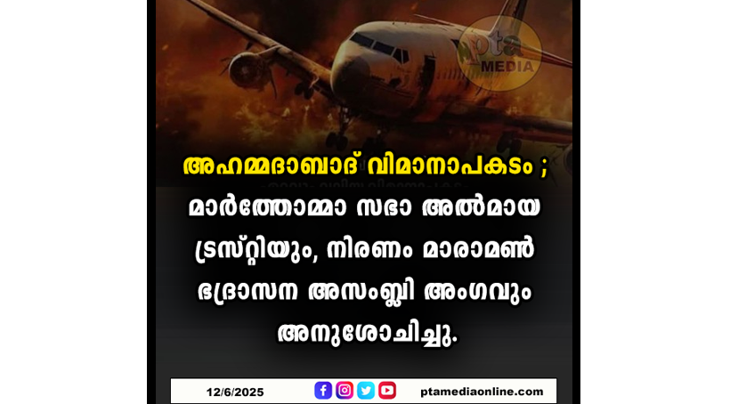 അഹമ്മദാബാദ് വിമാനാപകടം ; മാർത്തോമ്മാ സഭാ അൽമായ ട്രസ്റ്റിയും, നിരണം മാരാമൺ ഭദ്രാസന അസംബ്ലി അംഗവും അനുശോചിച്ചു.