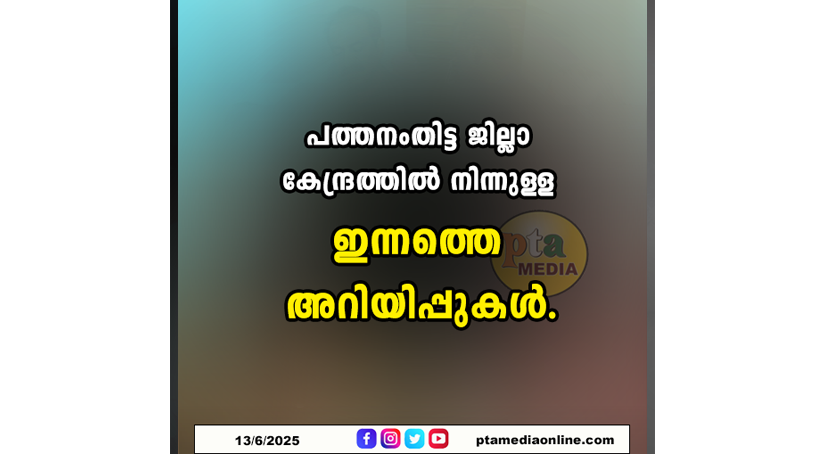 പത്തനംതിട്ട ജില്ലാ കേന്ദ്രത്തിൽ നിന്നുള്ള ഇന്നത്തെ അറിയിപ്പുകൾ.