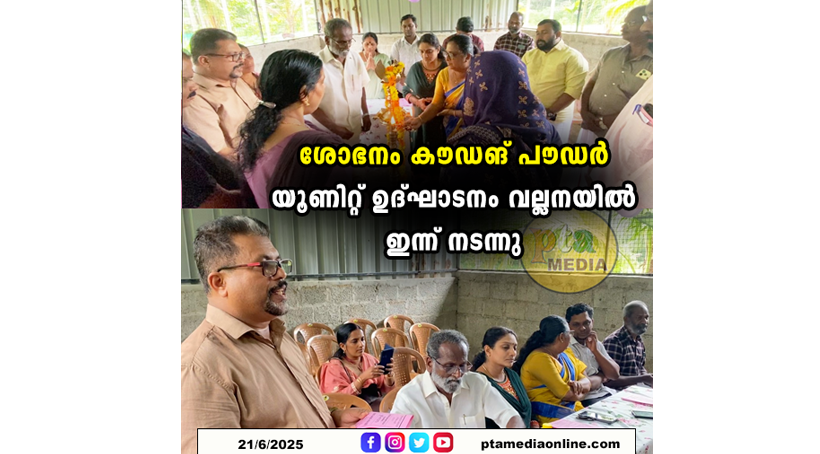 ആറന്മുള – ഗ്രാമപ്പഞ്ചായത്തിലെ വല്ലനയിൽ പന്തളം ബ്ലോക്ക് പഞ്ചായത്ത് 2024 – 25 വാർഷിക പദ്ധതിയിലുൾപ്പെടുത്തി, പ്രാദേശിക വികസന ചെറുകിട വ്യവസായം പദ്ധതിയിൽ സബ്സിഡി ലഭ്യമാക്കിയ വനിതാ വ്യവസായ സംരംഭമായ ശോഭനം കൗഡങ് പൗഡർ യൂണിറ്റിന്റെ ഉദ്ഘാടനം ഇന്ന് നടന്നു. ചാണകം, കോഴിക്കാഷ്ടം, ചാരം, തേയിലച്ചണ്ടി എന്നിവ നിശ്ചിത അനുപാതത്തിൽ മിക്സ് ചെയ്തു പൊടിച്ചു ഉണ്ടാക്കുന്ന ജൈവവളമാണ് ശോഭനം കൗഡങ് പൗഡർ. രാസവളങ്ങളിൽ നിന്നുള്ള മോചനവും, ലാഭകരവുമാണ് ഈ ജൈവവളം. തുടക്കത്തിൽ ആറന്മുള പഞ്ചായത്തിലും ആവിശ്യം അനുസരിച്ചു മറ്റു പഞ്ചായത്തുകളിലേക്കും വിതരണം ചെയ്യാനുള്ള തയ്യാറെടുപ്പിലാണ് സംരംഭകർ.