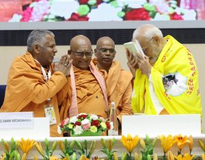 ന്യൂഡൽഹി – ഇന്ന് ന്യൂഡൽഹി വിഗ്യാൻഭവനിൽ നടന്ന ശ്രീനാരായണ ഗുരു – മഹാത്മഗാന്ധി സമാഗമ ശതാബ്ദി ആഘോഷ ചടങ്ങ് പ്രൗഢഗംഭീരമായി. ശ്രീനാരായണ ധർമസംഘം ട്രസ്റ്റ് പ്രസിഡന്റ് സ്വാമി സച്ചിദാനന്ദ പറഞ്ഞത്, നരേന്ദ്രമോദിയെ കാണുന്നത് മഹാത്മ ഗാന്ധിയുടെ പ്രതീകമായിട്ടാണെന്ന്. പ്രധാനമന്ത്രിക്ക് ശിവഗിരി മഠത്തോട് പ്രത്യേക അടുപ്പമുണ്ട്. ഏതെങ്കിലും മന്ത്രിയുടേയോ രാഷ്ട്രീയക്കാരുടേയോ ശുപാർശയില്ലാതെയാണ് പ്രധാനമന്ത്രി ഈ ചടങ്ങിനെത്തിയത്. ഇതുപോലൊരു പ്രധാനമന്ത്രി മുമ്പ് ഉണ്ടായിട്ടില്ലന്നും സ്വാമി സച്ചിദാനന്ദ പറഞ്ഞു.