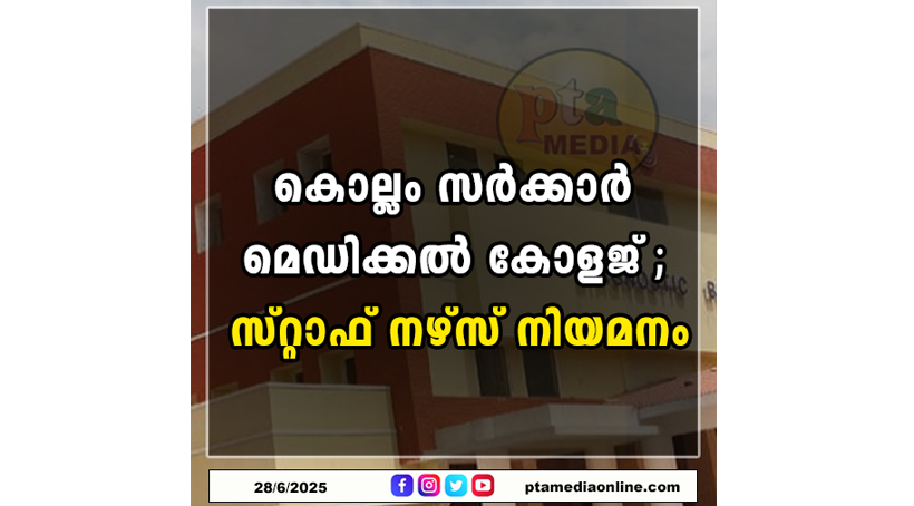 കൊല്ലം സർക്കാർ മെഡിക്കൽ കോളജ് ആശുപത്രിയിൽ സ്റ്റാഫ് നഴ്സുമാരെ നിയമിക്കുന്നതിന് അഭിമുഖം നടത്തും. യോഗ്യത: ജനറൽ നഴ്സിംഗ് മിഡ് വൈഫറി / ബി.എസ്.സി നഴ്സിംഗ്, കേരള നഴ്സിംഗ് കൗൺസിൽ രജിസ്ട്രേഷൻ. സർക്കാർ ആശുപത്രികളിൽ പ്രവൃത്തി പരിചയം ഉള്ളവർക്ക് മുൻഗണന. പ്രായപരിധി: 18-41 വയസ്. ബന്ധപ്പെട്ട രേഖകളുടെ പകർപ്പ് സഹിതമുള്ള അപേക്ഷ hdsgmchkollam@gmail.com മുഖേന ജൂലൈ മൂന്ന് വൈകിട്ട് അഞ്ചിനകം ലഭ്യമാക്കണം. അഭിമുഖത്തീയതി www.gmckollam.edu.in ൽ പ്രസിദ്ധപ്പെടുത്തും. ഫോൺ 0474 2575050.
