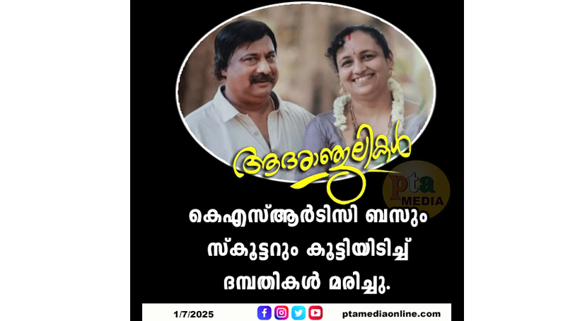 കെഎസ്ആർടിസി ബസും സ്‌കൂട്ടറും കൂട്ടിയിടിച്ച് ദമ്പതികൾ മരിച്ചു.