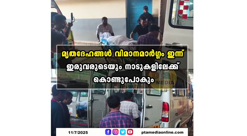 മൃതദേഹങ്ങൾ വിമാനമാർഗ്ഗം ഇന്ന് ഇരുവരുടെയും നാടുകളിലേക്ക് കൊണ്ടുപോകും