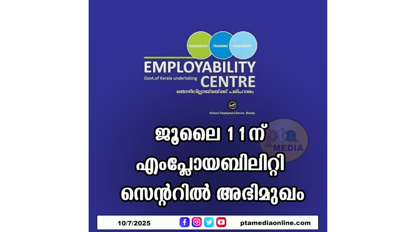 തിരുവനന്തപുരം – ജൂലൈ 11, (നാളെ) രാവിലെ 10 മണിക്ക് തിരുവനന്തപുരം ജില്ലാ എംപ്ലോയ്മെന്റ് എക്സ്ചേഞ്ചിന് കീഴിലുള്ള എംപ്ലോയബിലിറ്റി സെന്ററുകളിൽ വിവിധ സ്വകാര്യ സ്ഥാപനങ്ങളിലെ ഒഴിവുകളിലേക്ക് അഭിമുഖം നടക്കും. ബ്രാഞ്ച് മാനേജർ, ബ്രാഞ്ച് എക്സിക്യൂട്ടീവ്, ഇൻഷുറൻസ് അഡ്വൈസർ, സെയിൽസ് മാനേജർ, ഓഫീസർ PARAM തുടങ്ങിയ തസ്തികകളിലേക്കാണ് നിയമനം. ബ്രാഞ്ച് മാനേജർ, ബ്രാഞ്ച് എക്സിക്യൂട്ടീവ്, സെയിൽസ് മാനേജർ എന്നീ തസ്തികകൾക്ക് ബിരുദമാണ് യോഗ്യത. ഇൻഷുറൻസ് അഡ്വൈസർ, ഓഫീസർ PARAM തസ്തികകൾക്ക് പ്ലസ് ടു വാണ് യോഗ്യത. സെയിൽസ് മാനേജർ തസ്തികയ്ക്ക് കുറഞ്ഞത് ഒരു വർഷത്തെ തൊഴിൽ പരിചയം നിർബന്ധമാണ്.