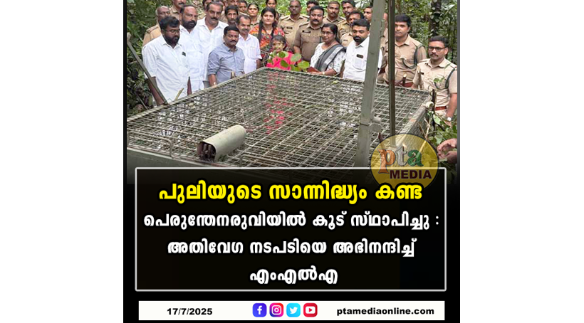 റാന്നി:- പുലിയുടെ സാന്നിദ്ധ്യം കണ്ട പെരുന്തേനരുവി തോട്ടം മേഖലയില് ഇതിനെ പിടികൂടാനായി കൂട് സ്ഥാപിച്ചു. പുലിയുടെ സാന്നിദ്ധ്യം ഉണ്ടായി 24 മണിക്കൂറിനുള്ളില് കൂട് വയ്ക്കാന് അനുമതി ലഭിച്ചത് ചരിത്രമാണെന്ന് അഡ്വ. പ്രമോദ് നാരായണ് എം.എല്.എ പറഞ്ഞു. വെച്ചൂച്ചിറ പഞ്ചായത്തിലെ പെരുന്തേനരുവി താന്നിക്കാപ്പുഴയില് കഴിഞ്ഞ ദിവസം പുലര്ച്ചെയാണ് ടാപ്പിംഗ് തൊഴിലാളി പുലിയെ കണ്ടത്. കാല്പ്പാടുകള് പരിശോധിച്ചു പുലിയുടെ സാന്നിദ്ധ്യം വനം വകുപ്പും സ്ഥിരീകരിച്ചിരുന്നു. എത്രയും വേഗം കൂട് സ്ഥാപിക്കണമെന്ന് എം .എല്.എ വനം വകുപ്പിനോട് ആവശ്യപ്പെട്ടിരുന്നു. ചീഫ് വൈല്ഡ് ലൈഫ് വാര്ഡന് പ്രമോദ് ജി. കൃഷ്ണനാണ് കൂടു വയ്ക്കുന്നതിനുള്ള അന്തിമ തീരുമാനമെടുത്തത്. പഞ്ചായത്ത് പ്രസിഡന്റ് ഇ.വി വര്ക്കി, വൈസ് പ്രസിഡന്റ് പൊന്നമ്മ ചാക്കോ, മെമ്പര്മാരായ ടി.കെ ജെയിംസ്, സിറിയക്ക് തോമസ്,നിഷാ അലക്സ്, റേഞ്ച് ഓഫീസര് ബി ആര് ജയന്, ആര്. വരദരാജന് എന്നിവരും എംഎല്എ യോടൊപ്പം കൂട് വച്ച സ്ഥലം സന്ദര്ശിക്കാന് എത്തിയിരുന്നു.