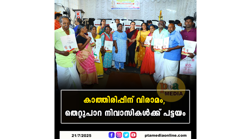 പത്തനംതിട്ട – പതിറ്റാണ്ടായുള്ള കാത്തിരിപ്പിന് വിരാമമിട്ട് പട്ടയം ലഭ്യമായതിന്റെ സന്തോഷത്തിലാണ് പുല്ലാട് കോയിപ്രം പഞ്ചായത്തിലെ തെറ്റുപാറ നിവാസികൾ. പത്തനംതിട്ട റോയൽ ഓഡിറ്റോറിയത്തിൽ നടന്ന പട്ടയമേളയിൽ ആരോഗ്യവകുപ്പ് മന്ത്രി വീണാ ജോർജ് തെറ്റുപാറയിലെ 10 കുടുംബങ്ങൾക്ക് പട്ടയം കൈമാറി.
