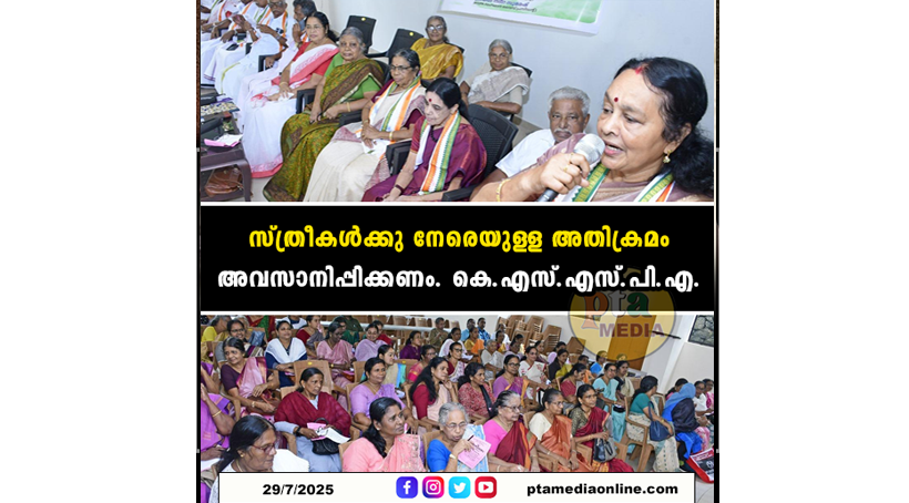 പത്തനംതിട്ട : രാജ്യത്തുടനീളം സ്ത്രീകൾക്കു നേരെയുള്ള അക്രമം വർദ്ധിച്ചു വരുകയാണ്. രാജ്യത്തിൻ്റെ സാമൂഹിക വിദ്യാഭ്യാസ സാസ്കാരിക മേഖലകളിൽ ഇന്നുണ്ടായ പുരോഗതിക്ക് സ്ത്രികളുടെ സംഭാവന വിസ്മരിക്കുന്ന വിധത്തിലുള്ള വിവേചനവും അതിക്രമവും വർദ്ധിക്കുമ്പോഴും ഒരു നടപടിയും കേന്ദ്ര സംസ്ഥാന സർക്കാരുകൾ എടുക്കുന്നില്ല. ഇതിനെതിരെ നാം പോരാടേണ്ടത് അനിവാര്യമായിരിക്കുന്നു എന്ന് കേരള സ്റ്റേറ്റ് സർവ്വീസ്സ് പെൻഷനേഴ്സ് അസോസിയേഷൻ വനിതാ ഫോറം ജില്ല ശില്പശാല ഉദ്ഘാടനം ചെയ്തുകൊണ്ട് സംസ്ഥാന വൈസ് പ്രസിഡൻ്റ് നാദിറാ സുരേഷ് സൂചിപ്പിച്ചു. വനിതാ ഫോറം ജില്ല പ്രസിഡൻ്റ് എലിസബത്ത് അബു അദ്ധ്യക്ഷതവഹിച്ചു. മുഖ്യപ്രഭാഷണം ഡിസിസി പ്രസിഡൻ്റ് പ്രൊഫ.. സതീഷ് കൊച്ചുപറമ്പിൽ നിർവഹിച്ചു. സംസ്ഥാന ട്രഷറർ പി. ഗോപാലകൃഷണൻ സംഘടനാ ചരിത്രത്തെ കുറിച്ചും മാലേത്ത് സരളാദേവി എക്സ് എം എൽ എ, സംസ്ഥാന ഭാരവാഹികളായ എസ് മധുസുദനൻപിള്ള, അമ്മിണി കുട്ടി ടീച്ചർ, ബിജിലി ജോസഫ്, എന്നിവരുംഎം.എ ജോൺ, വിൽസൺ തുണ്ടിയത്ത്, മറിയാമ്മ തരകൻ, ചെറിയാൻ ചെന്നീർക്കര ആർ മോഹൻ കുമാർ വൈ .റഹീം റാവുത്തർ, ലീലാ രാജൻ, മറിയാമ്മ വർക്കി,കെ. ജി. റെജി, ജെസി വർഗീസ്, എച്ച് ഹസീന, ഡോ. സാറാമ്മ ,എലിസബേത്ത് തോമസ് എന്നിവർ പ്രസംഗിച്ചു.