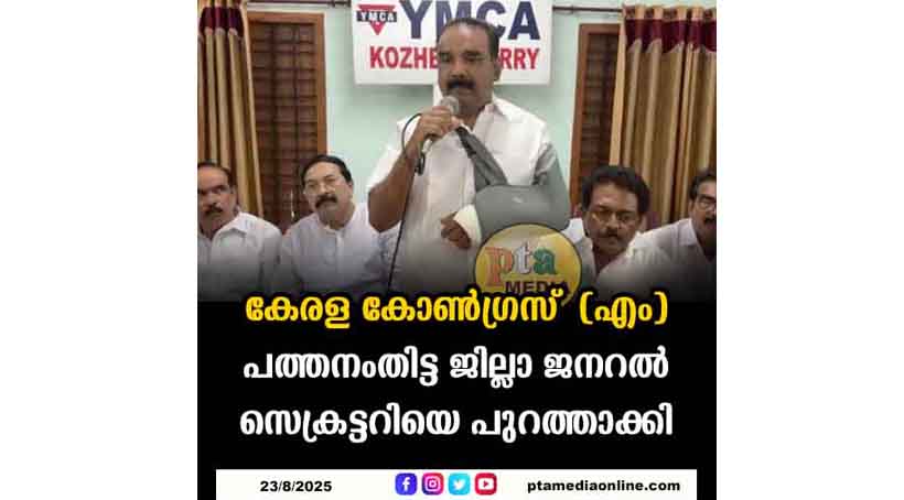 കോഴഞ്ചേരി – കേരള കോൺഗ്രസ് (എം) പത്തനംതിട്ട ജില്ലാ ജനറൽ സെക്രട്ടറി ശ്രീ എബ്രഹാം വാഴയിലിനെയും കോന്നി നിയോജക മണ്ഡലം പ്രസിഡന്റ് ശ്രീ സി. വി വര്ഗീസ് നെയും പാർട്ടി വിരുദ്ധ പ്രവർത്തങ്ങളുടെ പേരിൽ ഔദ്യോഗിക സ്ഥാനങ്ങളിൽ നിന്നും നീക്കംചെയ്ത് പാർട്ടിയിൽ പ്രാഥമിക അംഗത്വത്തിൽ നിന്നും പുറത്താക്കിയിരിക്കുന്നു