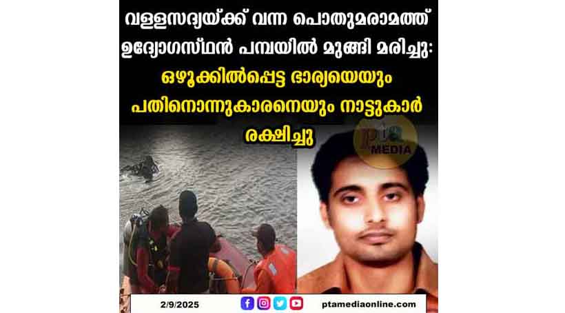 വള്ളസദ്യയ്ക്ക് വന്ന പൊതുമരാമത്ത് ഉദ്യോഗസ്ഥൻ പമ്പയിൽ മുങ്ങി മരിച്ചു: ഒഴൂക്കിൽപ്പെട്ട ഭാര്യയെയും പതിനൊന്നുകാരനെയും നാട്ടുകാർ രക്ഷിച്ചു