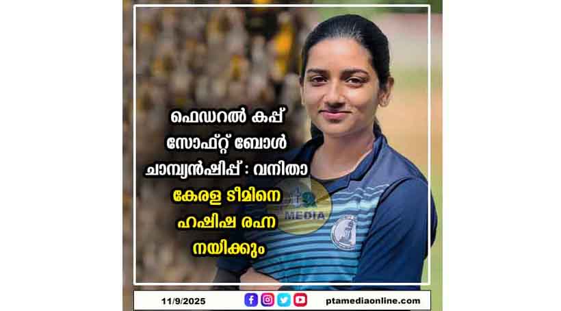 പത്തനംതിട്ട : ഈ മാസം 12 മുതൽ 14 വരെ ഉത്തർ പ്രദേശിലെ ഗാസിയാബാദിലെ എച്ച് എൽ എം കോളേജിൽ നടക്കുന്ന 15 മത് ഫെഡറേഷൻ കപ്പ് സോഫ്റ്റ് ബോൾ ചാമ്പ്യൻഷിപ്പിൽ പങ്കെടുക്കുന്ന കേരള വനിതാ ടീമിനെ ഹഷിഷ രഹ്ന (വയനാട് ) നയിക്കും. പത്തനംതിട്ട കത്തോലിക്കേറ്റ് കോളേജ് ഗ്രൗണ്ടിൽ നടന്ന ക്യാമ്പിലെ മികച്ച പ്രകടനത്തിന്റെ അടിസ്ഥാനത്തിലാണ് ടീമിനെ തിരഞ്ഞെടുത്തത്. മറ്റ് ടീം അംഗങ്ങൾ സ്നേഹ ശ്രീധരൻ ( വൈസ് ക്യാപ്റ്റൻ, പത്തനംതിട്ട), ഹരി നന്ദന, ഉമാപതി എസ്, കൃഷ്ണ നന്ദ, ( കോഴിക്കോട്), വിസ്മയ രാജു, ശാലിനി സജി ( കോട്ടയം), അശ്വതി എസ്, നന്ദന എം,അക്ഷയ പി, ( പാലക്കാട്), ജിബി എബി, ശ്രീരഞ്ജിനി എം.കെ, നിരഞ്ജന പ്രവീൺ), ലക്ഷ്മി എ.എൻ ( പത്തനംതിട്ട), അസിൻ എ.എൻ (തിരുവനന്തപുരം), അശ്വതി രാജ് ( കൊല്ലം), കോച്ച് കുഞ്ഞുമോൻ പിബി ( പത്തനംതിട്ട), മാനേജർ ഷിഫന എം ( പാലക്കാട്)