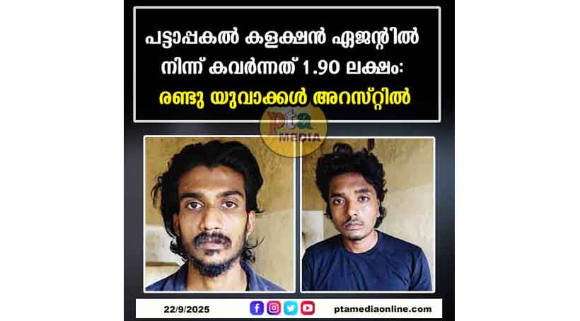 അടൂര്: കളക്ഷന് പണവുമായി പോയ ഏജന്റിനെ ആക്രമിച്ചു പണം തട്ടിയ കേസിലെ രണ്ടു പ്രതികളെ അടൂര് പോലീസ് അതിവിദഗ്ദ്ധമായി പിടികൂടി. അടൂര് പന്നിവിഴ കൃഷ്ണവിലാസത്തില് വരുണ് (26), പാറക്കൂട്ടം മുണ്ടപ്പള്ളി കാര്ത്തികയില് സൂര്യ എന്ന ആലേഖ് (20) എന്നിവരാണ് അറസ്റ്റിലായത്. 12 നു ഉച്ചയ്ക്ക് 1.50ഓടെ അടൂര് ബൈപ്പാസിനു സമീപമുള്ള ചെറുപുഞ്ച എന്ന സ്ഥലത്തു വച്ച് ഏനാത്ത് സ്വദേശിയായ ശ്രീദേവിനെ തടഞ്ഞുനിര്ത്തി ഒരു ലക്ഷത്തി തൊണ്ണൂറായിരം രൂപയടങ്ങിയ ബാഗ് പ്രതികള് കവര്ച്ച ചെയ്ത് എടുക്കുകയായിരുന്നു.