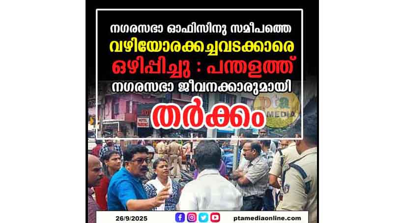 പന്തളം : നഗരസഭാ ഓഫിസിനു സമീപത്തെ വഴിയോരക്കച്ചവടക്കാരെ ഒഴിപ്പിച്ചു. ഇതില് പ്രതിഷേധിച്ച കച്ചവടക്കാരും നഗരസഭാ ഭരണസമിതി അംഗങ്ങളും തമ്മില് തര്ക്കമുണ്ടായി. നഗരസഭ നിര്മിക്കുന്ന പുതിയ ബസ് സ്റ്റാന്ഡില് നിന്നു പുറത്തേക്കുള്ള റോഡ് നിര്മാണത്തിനായാണ് കച്ചവടക്കാരെ ഒഴിപ്പിച്ചതെന്ന് നഗരസഭാ അധികൃതര് പറയുന്നു. ഇന്നലെ രാവിലെ എട്ടിന് ഒഴിപ്പിക്കല് ആരംഭിച്ചത്. പച്ചക്കറി, മത്സ്യം തുടങ്ങിയവ വില്പന നടത്തിവന്ന മൂന്ന് കച്ചവടക്കാരെയാണ് ഒഴിപ്പിച്ചത്. പോലീസിന്റെ സഹായത്തോടെ എത്തിയ നഗരസഭാ അധികൃതര് ഷെഡ് പൊളിക്കുകയായിരുന്നു.