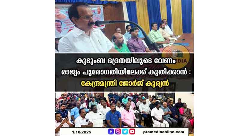 പന്തളം: ഭാരതത്തിലെ ഓരോ കുടുംബത്തിനും സാമ്പത്തിക ഭദ്രത ഉറപ്പുവരുത്താനുതക രീതിയിൽ ദീർഘവീക്ഷണത്തോടെയുള്ള പ്രവർത്തനങ്ങളാണ് നരേന്ദ്രമോദി സർക്കാർ നടപ്പിലാക്കിയ വരുന്നതെന്നും 2047 ആകുമ്പോൾ ഭാരതം ലോകത്ത് ഒന്നാം സ്ഥാനത്ത് എത്തുമെന്നും കേന്ദ്രമന്ത്രി ജോർജ് കുര്യൻ പറഞ്ഞു. കർഷകമോർച്ച പത്തനംതിട്ട ജില്ല കമ്മിറ്റിയുടെ നേതൃത്വത്തിൽ പന്തളം ലയൺസ് ക്ലബ് ഹാളിൽ സംഘടിപ്പിച്ച