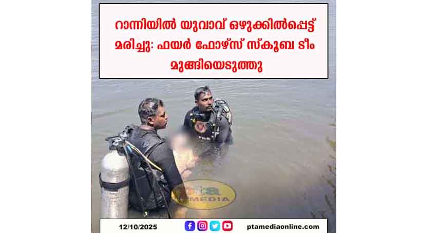 റാന്നിയിൽ യുവാവ് ഒഴുക്കിൽപ്പെട്ട് മരിച്ചു: ഫയർ ഫോഴ്‌സ് സ്‌കൂബ ടീം മുങ്ങിയെടുത്തു