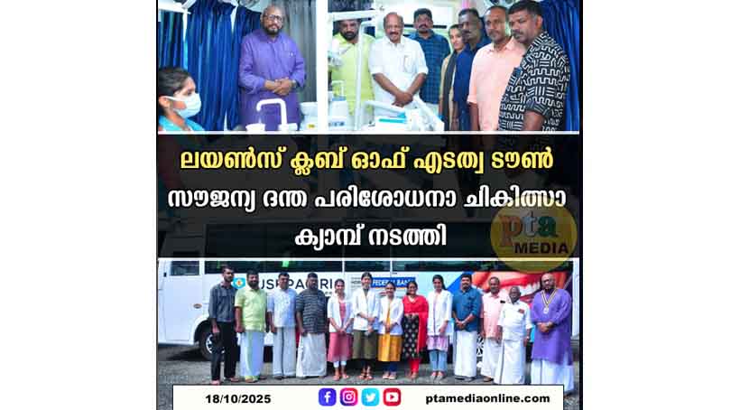 ലയൺസ് ക്ലബ്സ് ഡിസ്ട്രിക്ട് 318ബി യുടെ പുഞ്ചിരി പ്രോജക്ടിന്റെ ഭാഗമായി ലയൺസ് ക്ളബ് ഓഫ് എടത്വ ടൗണിന്റെ നേതൃത്വത്തിൽ വിവിധ കേന്ദ്രങ്ങളിലും, സ്കൂളുകളിലും നടപ്പിലാക്കുന്ന മൊബൈൽ ഓപ്പൺ ഡെന്റൽ കെയർ ക്ലിനിക്ക് പദ്ധതി റീജിയൺ ചെയർമാൻ സുരേഷ് ബാബു ഉദ്ഘാടനം ചെയ്തു.ആധുനിക സംവിധാനങ്ങൾ ഉൾകൊള്ളിച്ച് ദന്തൽ കൗൺസിൽ ഓഫ് ഇന്ത്യയുടെയും കേരള ഹെൽത്ത് യൂണിവേഴ്സിറ്റിയുടെയും മാനദണ്ഡങ്ങൾ പാലിച്ച് നിർമ്മിച്ച മൊബൈൽ ഡെന്റൽ ക്ലിനിക്കിൽ ഓട്ടോക്ളേവ്, സെൻട്രലൈസ്ഡ് സക്ഷൻ,പോർടേബിൾ എക്സ്റേ യൂണിറ്റ് പൂർണ്ണമായി ശീതികരിച്ച ക്യാബിനിൽ രണ്ട് ഓട്ടോമാറ്റിക് ഇലക്ട്രിക് ഡെന്റൽ ചെയറുകൾ എന്നിവ ഉണ്ട്.സേവനം സൗജന്യമാണ്. ദന്ത ആരോഗ്യ സംരക്ഷണ ബോധവത്കരണ ലഘുലേഖയുടെ പ്രകാശനം സോൺ ചെയർമാൻ ജൂണി തോമസ് കുതിരവട്ടം നിർവഹിച്ചു.’ദന്താരോഗ്യവും സംരംക്ഷണവും ‘എന്ന വിഷയത്തിൽ ഡിപ്പാർട്ട്മെന്റ് ഓഫ് പബ്ലിക് ഹെൽത്ത് ആന്റ് കമ്മ്യൂണിറ്റി ലെക്ച്ചറർ ഡോ. റൂബി മേരി ഫിലിപ്പ് , ഡോ. ദിയ എൽസ എന്നിവർ സെമിനാറിന് നേതൃത്വം നല്കി.ഡോ.അഗ്ന ഡോണാറ്റസ്, ഡോ.ആശ് ലിൻ സാവ് യോ, ഡോ. റിയാ എൽസ ബിനോയി എന്നിവരുടെ നേതൃത്വത്തിൽ ക്യാമ്പിലെത്തിയ രോഗികൾക്ക് സൗജന്യ ദന്ത ചികിത്സയും നല്കി. ലയൺസ് ക്ലബ് ഓഫ് എടത്വ ടൗൺ സെക്രട്ടറി ബിൽബി മാത്യൂ കണ്ടത്തിൽ,ട്രഷറാർ ബിനോയി കളത്തൂർ, വൈസ് പ്രസിഡന്റ് കെ ജയ ചന്ദ്രൻ, സോഷ്യൽ സർവീസ് ചെയർപേഴ്സൺ , വിൻസൻ ജോസഫ് കടുമത്തിൽ, സുജിത്ത് പുഴയോരത്ത്,ജോർജിയൻ സംഘം പ്രസിഡന്റ് ബിനോയി ജോസഫ്, സെക്രട്ടറി കെ തങ്കച്ചൻ, മോബിൻ ജേക്കബ്, ജോഷി കുളപ്പുരയ്ക്കൽ, ഡാനിയേൽ തോമസ് എന്നിവർ പ്രസംഗിച്ചു.