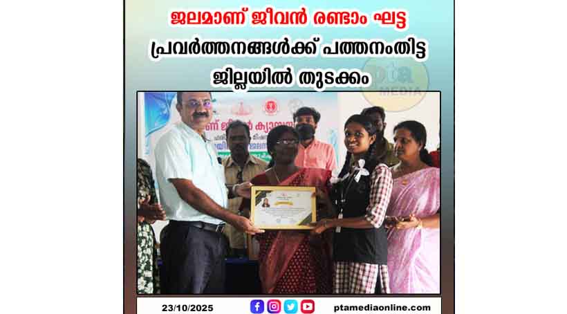 പത്തനംതിട്ട – ‘ജലമാണ് ജീവൻ’ കാമ്പയിൻ രണ്ടാംഘട്ട പ്രവർത്തനോദ്ഘാടനം കൊറ്റനാട് എസ്.വി.എച്ച്.എസ്.എസിൽ ഗ്രാമപഞ്ചായത്ത് പ്രസിഡന്റ് ഉഷ ഗോപി നിർവഹിച്ചു. ഹരിതകേരളം മിഷൻ, ഗ്രാമപഞ്ചായത്ത്, ആരോഗ്യ വകുപ്പ് എന്നിവ സംയുക്തമായാണ് കാമ്പയിൻ നടത്തുന്നത്. കൊറ്റനാട് ഗ്രാമപഞ്ചായത്തിലെ 100 വീടുകളിലെ കിണറുകളിലെ ജലം ഹരിതകേരളം മിഷന്റെ ലാബുകളിൽ വിദ്യാർഥികളായ അഞ്ജന രാജേഷ്, വൈഗ സുമോദ് എന്നിവർ പരിശോധന നടത്തി. മാതൃകാപരമായ പ്രവർത്തനത്തിന് വിദ്യാർഥികൾക്ക് ഹരിതകേരളം മിഷൻ ജില്ലാ കോർഡിനേറ്റർ ജി അനിൽകുമാർ അഭിനന്ദന പത്രം നൽകി. കുട്ടികൾ തയാറാക്കിയ പ്രൊജക്ട് ഗ്രാമപഞ്ചായത്ത് പ്രസിഡന്റിനു കൈമാറി.