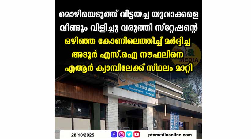 അടൂർ: അതിഥി തൊഴിലാളികളെ മർദിച്ചുവെന്ന പരാതിയിൽ സ്റ്റേഷനിൽ വിളിച്ചു വരുത്തി എസ്.എച്ച്.ഓ മൊഴിയെടുത്ത് വിട്ടയച്ച യുവാക്കളെ വീണ്ടും വിളിച്ചു വരുത്തി ക്രൂരമായി മർദിച്ച എസ്ഐ നൗഫലിനെ ഡി.എച്ച്.ക്യൂ(ജില്ലാ പോലീസ് ആസ്ഥാനം)വിലേക്ക് സ്ഥലം മാറ്റി. ഇയാൾക്കെതിരേ വകുപ്പു തല നടപടികൾ തുടരും. കർശന നടപടിയുണ്ടാകുമെന്നാണ് സൂചന.
