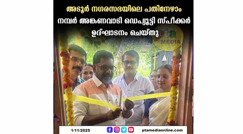 അടൂർ – നഗരസഭയിലെ എട്ടാം വാർഡിലെ 17-ാം നമ്പർ അങ്കണവാടി നിയമസഭ ഡെപ്യൂട്ടി സ്പീക്കർ ചിറ്റയം ഗോപകുമാർ ഉദ്ഘാടനം ചെയ്തു. അടൂർ നഗരസഭ 25 ലക്ഷം രൂപ ചെലവഴിച്ചാണ് അങ്കണവാടി നിർമിച്ചത്. കെട്ടിടം നിർമിക്കുന്നതിന് ആവശ്യമായ സ്ഥലം സൗജന്യമായി നൽകിയ ഭാസ്‌കര വിലാസത്തിൽ ഗിരിജാ ദേവിയെ ഡെപ്യൂട്ടി സ്പീക്കർ അഭിനന്ദിച്ചു.