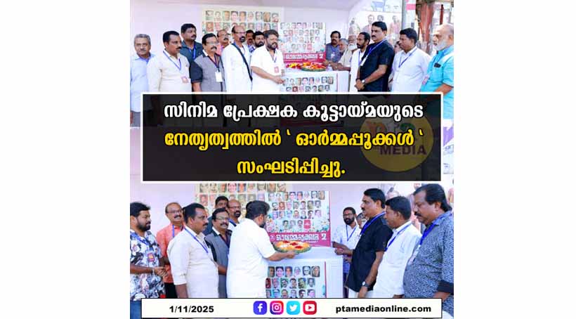 പത്തനംതിട്ട : ജില്ല രൂപികരണദിനമായ നവംബർ ഒന്നിന് സിനിമ പ്രേക്ഷക കൂട്ടായ്മ യുടെ നേതൃത്വത്തിൽ സിനിമരംഗത്ത് നിന്ന് വിടവാങ്ങിയ ജില്ലയിൽ നിന്നുള്ള കലാകാരൻമാരെ അനുസ്മരിക്കുന്ന ” ഓർമ്മപ്പൂക്കൾ 2 “സംഘടിപ്പിച്ചു.