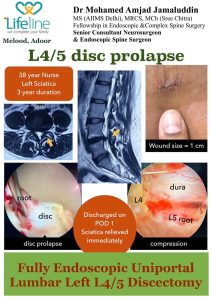 അടൂർ – ഡിസ്കിന് വീക്കം മൂലം ദീർഘ കാലമായി വേദന അനുഭവിച്ചിരുന്ന യുവതിക്ക് സാധാരണയിൽ നിന്ന് വ്യത്യസ്തമായി എൻഡോസ്കോപ്പ് വഴി നട്ടെല്ലിൽ ശസ്ത്രക്രിയ നടത്തി അടൂർ ലൈഫ് ലൈൻ ആശുപത്രിയിലെ ന്യൂറോ സർജറി വിഭാഗം. അത്യാധുനികമായ ഈ ശസ്ത്രക്രിയക്ക് ന്യൂറോസർജൻ ഡോ അംജദ് ജമാലുദ്ദിൻ നേതൃത്വം വഹിച്ചു .