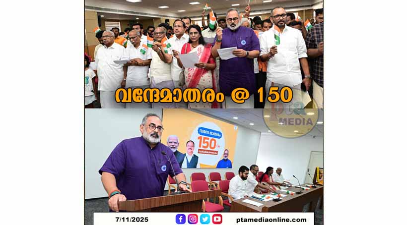 വന്ദേമാതരത്തിന്റെ നൂറ്റമ്പതാം വാർഷികത്തോടനുബന്ധിച്ചുള്ള ആഘോഷപരിപാടികളുടെ സംസ്ഥാനതല ഉദ്ഘാടനം തിരുവനന്തപുരത്ത് നടന്നു. സംസ്ഥാന അദ്ധ്യക്ഷൻ രാജീവ് ചന്ദ്രശേഖർ പരിപാടി ഉദ്ഘാടനം ചെയ്തു.