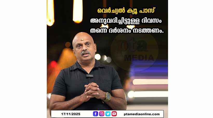 സന്നിധാനം – വെർച്വൽ ക്യൂ പാസ് അനുവദിച്ചിട്ടുള്ള ദിവസം തന്നെ ദർശനം നടത്തണം. മണ്ഡല-മകരവിളക്ക് മഹോത്സവത്തിനായി നവംബർ 16 ന് നട തുറന്ന ശേഷം ഇതുവരെ 1,36,000 ത്തിൽ അധികം പേർ ദർശനം നടത്തിയതായി എഡിജിപി എസ് ശ്രീജിത്ത്. സന്നിധാനത്തെ പോലിസ് ക്രമീകരണങ്ങൾ സംബന്ധിച്ച് സംസാരിക്കുകയായിരുന്നു അദ്ദേഹം. ആദ്യ ദിനം മാത്രം 55,000 ഓളം പേരാണ് ദർശനത്തിന് എത്തിയത്. തീർഥാടനകാലത്തേക്കായി 18,000 പോലിസ് ഉദ്യോഗസ്ഥരെയാണ് നിയോഗിക്കുക. നിലവിൽ 3500 ഉ ദ്യോഗസ്ഥരെ സന്നിധാനം, പമ്പ, നിലയ്ക്കൽ എന്നിവിടങ്ങളിലായി വിന്യസിച്ചിട്ടുണ്ട്. സുഗമവും സുരക്ഷിതവുമായ തീർഥാടനത്തിനായി പോലിസ് എല്ലാവിധ ക്രമീകരണങ്ങളും ഒരുക്കിയിട്ടുണ്ട്. തീർഥാടകർ നിർദേ ശങ്ങൾ പാലിച്ച് ദർശനം നടത്തി മടങ്ങണം. വിർച്ച്യൽ ക്യൂ ബുക്കിംഗിലൂടെയുള്ള 70,000 പേരേയും സ്പോട്ട് ബുക്കിംഗിലൂടെയുള്ള 20,000 പേരേയും ഉൾപ്പടെ പരമാവധി 90,000 തീർഥാടകർക്കാണ് ഒരു ദിവസം ദർശനം അനുവദിക്കുക. എല്ലാവർക്കും സുഗമമായ തീർഥാടനം ഉറപ്പാക്കുന്നതിനായി വിർച്യൽ ക്യൂ പാസ് അനുവദിച്ചിട്ടുള്ള ദിവസം തന്നെ ദർശനം നടത്തണമെന്നും അദ്ദേഹം പറഞ്ഞു.