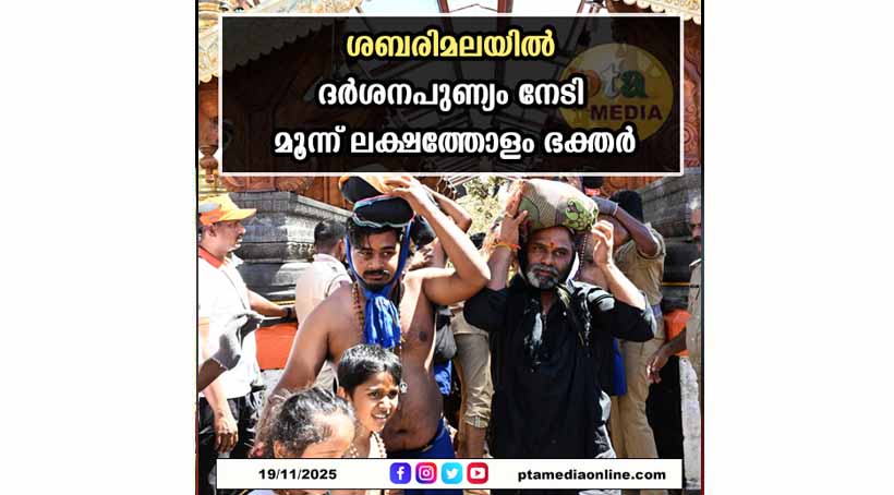 സന്നിധാനം – മണ്ഡല – മകരവിളക്ക് തീർഥാടനത്തിനായി ശബരിമല നട തുറന്ന ശേഷം ഇതുവരെ ദർശനം നടത്തിയത് മൂന്ന് ലക്ഷത്തോളം ഭക്തർ. 2,98,310 പേരാണ് നവംബർ 19 ന് വൈകിട്ട് അഞ്ച് വരെ എത്തിയത്. നവംബർ 16 ന് 53,278, 17 ന് 98,915, 18 ന് 81,543, 19 ന് വൈകിട്ട് അഞ്ച് വരെ 64,574 എന്നിങ്ങനെയാണ് ഭക്തരുടെ എണ്ണം.