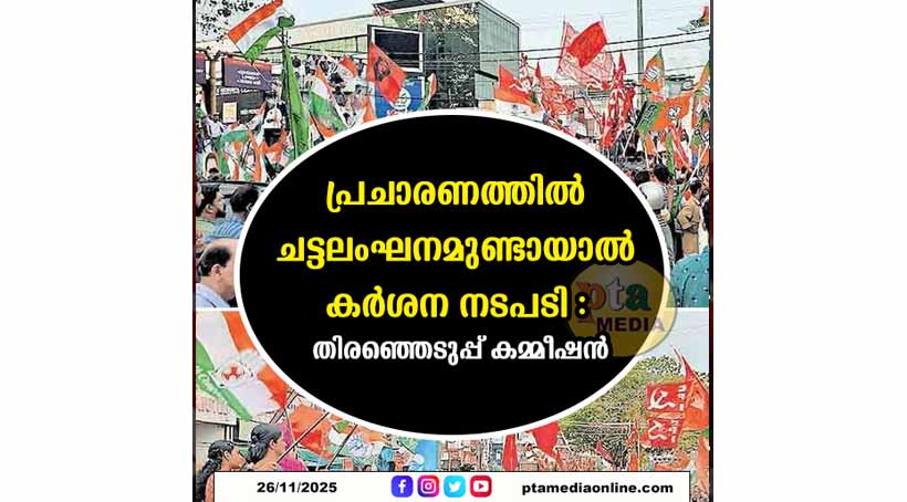 പത്തനംതിട്ട – തദ്ദേശ സ്വയംഭരണ സ്ഥാപനങ്ങളിലേക്കുള്ള പൊതുതിരഞ്ഞെടുപ്പ് ചട്ടലംഘനമുണ്ടായാൽ കർശന നടപടിയെന്ന് സംസ്ഥാന തിരഞ്ഞെടുപ്പ് കമ്മീഷൻ അറിയിച്ചു.