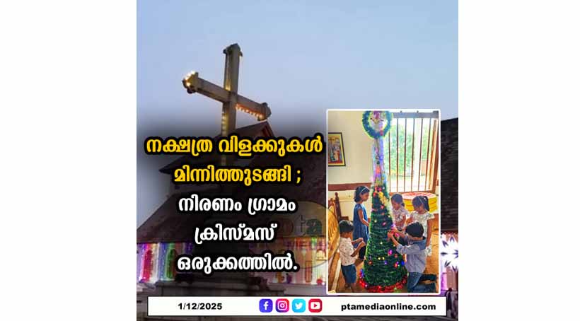 നിരണം – ക്രിസ്മസിനെ വരവേൽക്കാൻ നാടും നഗരവും ഒരുങ്ങുന്നു. ഡിസംബർ പിറന്നതോടെ നക്ഷത്ര വിളക്കുകളും ക്രിസ്മസ് ട്രീ സ്ഥാപിക്കുന്നതിന്റെയും തിരക്കിലാണ് ജനങ്ങൾ. തെരെഞ്ഞെടുപ്പ് ചൂടിന്റെ ഇടയിലും പതിവ് രീതികൾക്ക് ഒന്നും തന്നെ മുടക്കം ഇല്ല. ഇതിനായി ഉള്ള ഒരുക്കങ്ങൾ ഇന്നലെ ദൈവാലയങ്ങളിൽ നടന്നു. സെന്റ് തോമസ് ബിലീവേഴ്സ് ഈസ്റ്റേൺ ചർച്ച് നിരണം ഇടവകയിൽ വിശുദ്ധ കുർബാനയ്ക്ക് ശേഷം യൂത്ത് ഫെലോഷിപ്പ്, സണ്ടേസ്കൂൾ വിദ്യാർത്ഥികളുടെ നേതൃത്വത്തിൽ ദൈവാലയങ്ങൾ അലംങ്കരിച്ചു.